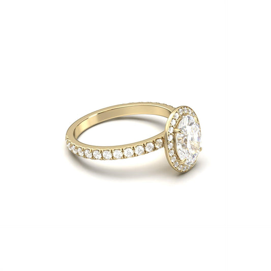 Oval Halo With Full Pavé 14K Yellow Gold Ready To Ship Moissanite Engagement Ring