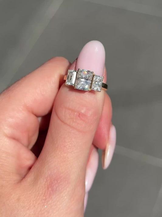 Radiant Trilogy Moissanite Engagement Ring – Timeless Design