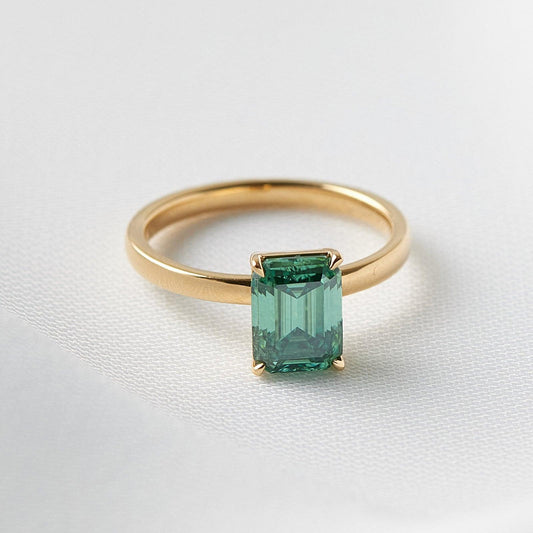 Emerald Cut Emerald Coloured Solitaire Moissanite Engagement Ring