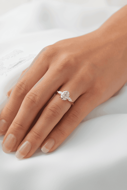 Oval Pear Accent Stones Moissanite Engagement Ring - Ready To Ship