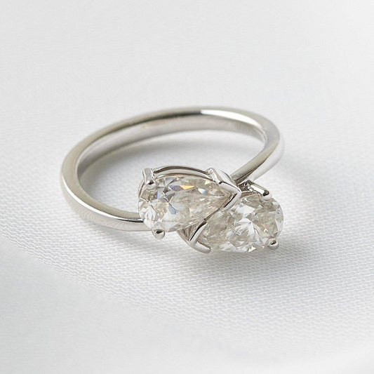 Pear Two-Stone Moissanite Engagement Ring - Ready To Ship