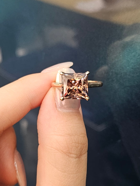 Princess Champagne Solitaire Moissanite Engagement Ring