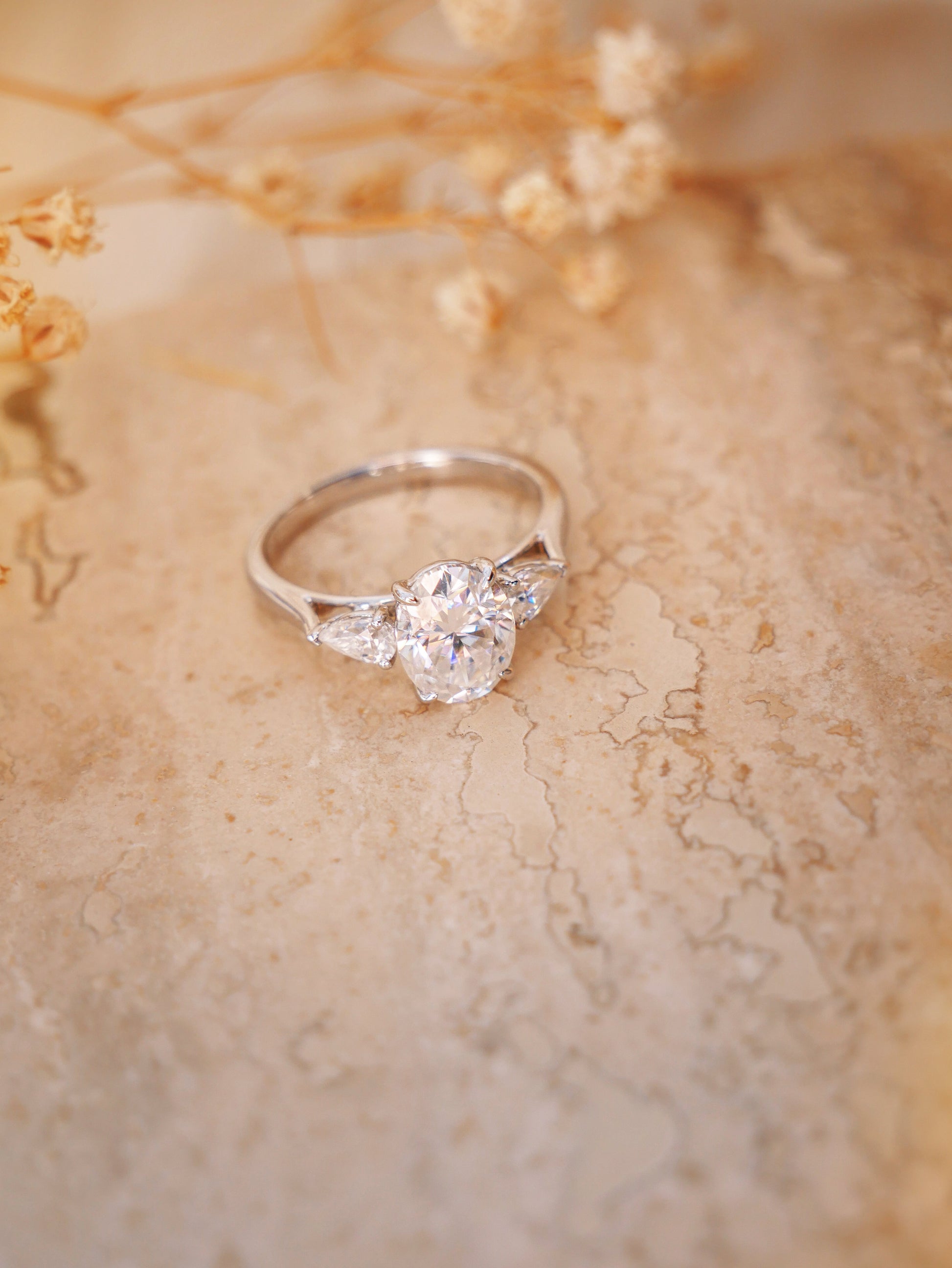 Oval Leaf Setting Moissanite Engagement Ring